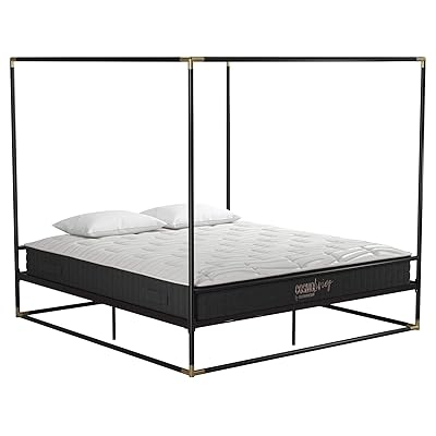 It measures 75 tall and includes circular. Celeste black/gold canopy metal king size bed frame. King size dark gold metal canopy bed frame headboard modern bedroom furniture. Clearance beneath the bed can be used for storage (11) ships in one box and it is easy to assemble. This item vingli king canopy bed frame, gold.